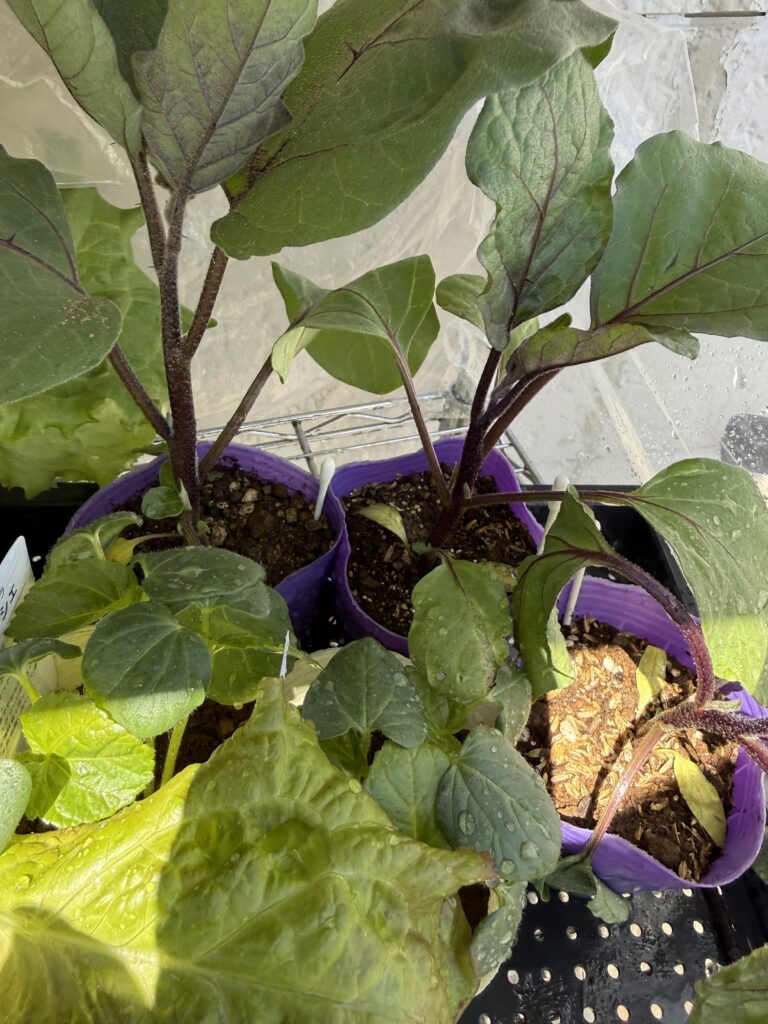 ▲ 苗屋さんで購入してきたレタスと小茄子の苗。元気そうでひと安心!
