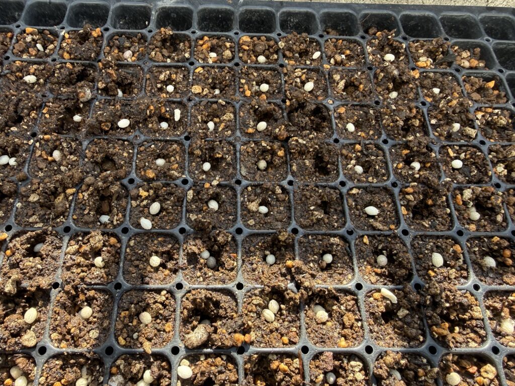 本日は、青パパイヤのたねを蒔きました。先日、スーパーで購入した青パパイヤを食べた後に、たねが残っていいたので、自分の畑に植え付けしてみようと思いました。本日は、育苗トレーに余ったたねを蒔いて、発芽できるか試験的に行ってみました。また発芽しましたら報告させていただきます。